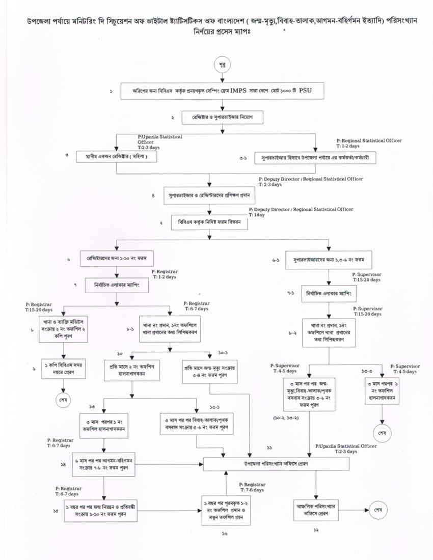 | ৩ | জন্ম-মৃত্যু,বিবাহ-তালাক,আগমন-বহির্গমন ইত্যাদি পরিসংখ্যান নির্নয়(মনিটরিং দি সিচুয়েশন অফ ভাইটাল স্ট্যাটিসটিকস অব বাংলাদেশ) | | দেখুন |